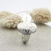 En ring redesignet av en gammel sølvskje, som kanskje en gang var midtpunktet i et familieselskap. Denne ringen forener historie og moderne design, og er et vakkert eksempel på bærekraftig håndverk. Ukjent, eldre mønster. Perfekt for deg som ønsker en ring med karakter, sjel og en historie å fortelle. Kløver ring, en tidløs hyllest til tradisjon og fornyelse, som bringer nytt liv til et gammelt objekt.