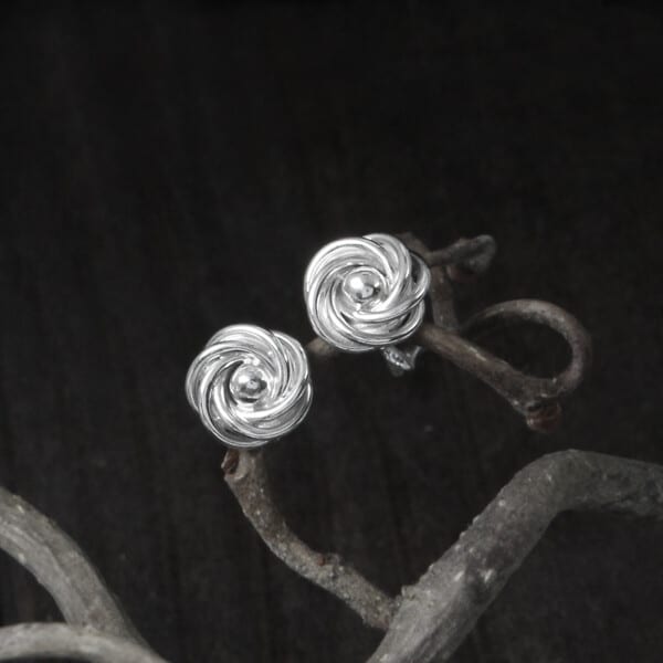 Moorish Rose ørepynt er håndlaget i sølv og inspirert av en klassisk chainmaille-teknikk. Små ringer er satt sammen til en enkel roseform med et tidløst og balansert uttrykk.