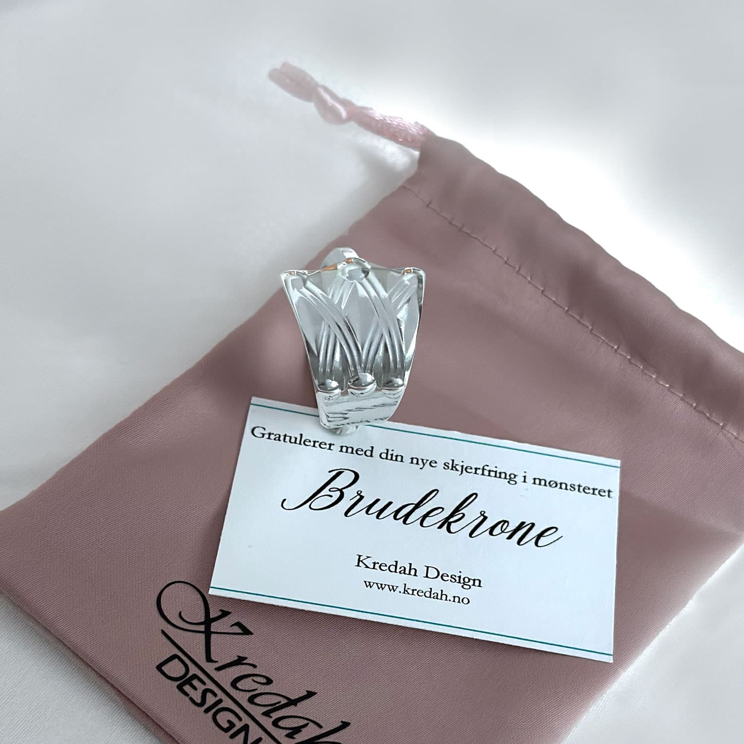 Skjerfring til bunad laget av bestikk i det tradisjonelle mønsteret Brudekrone.