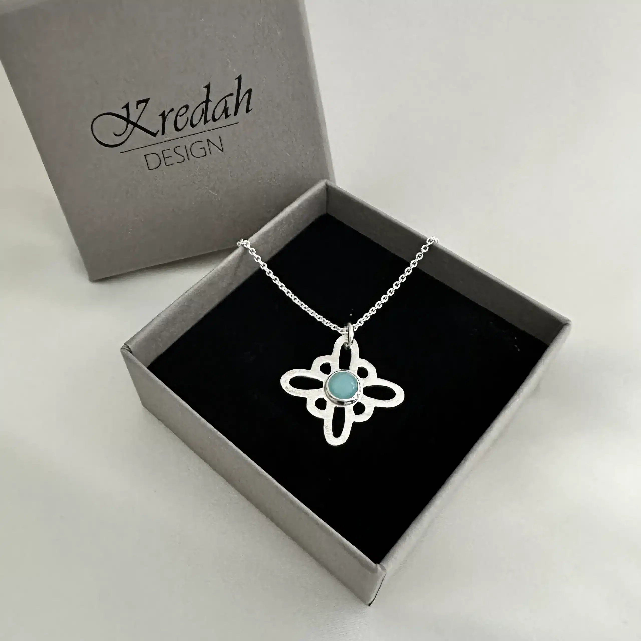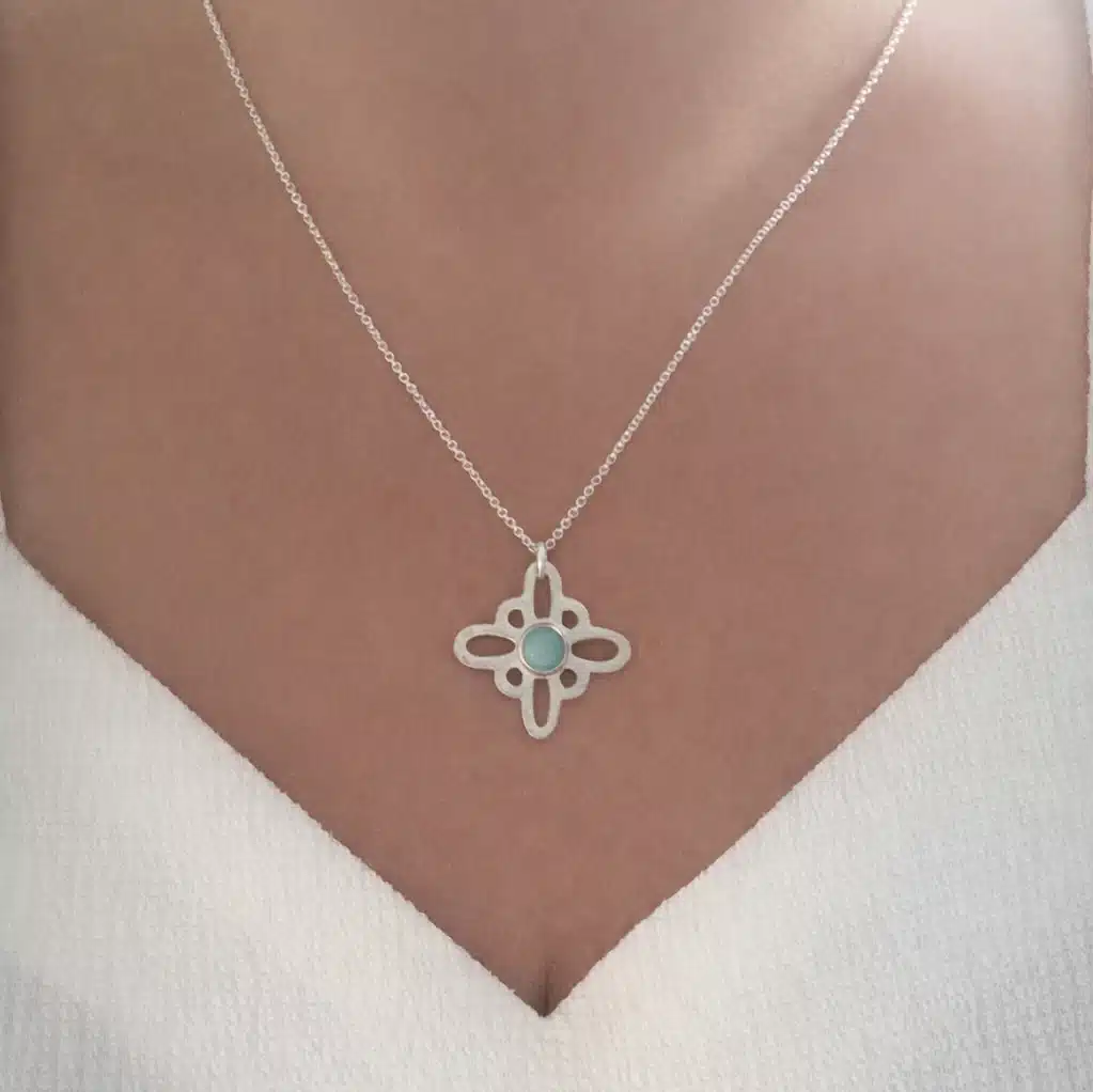 Sonja er et håndlaget halssmykke i sølv med amazonit.