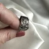 Denne ringen er laget av en gammel sølvskje med det vakre Valdresmønsteret. Kanskje har skjeen en gang vært en del av et familieselskap – nå har den fått nytt liv som et unikt smykke. En enkel og elegant hyllest til tradisjon, håndverk og fornyelse. Valdres oksidert ring, bær med deg en liten bit av historien, elegant redesignet for moderne bruk.