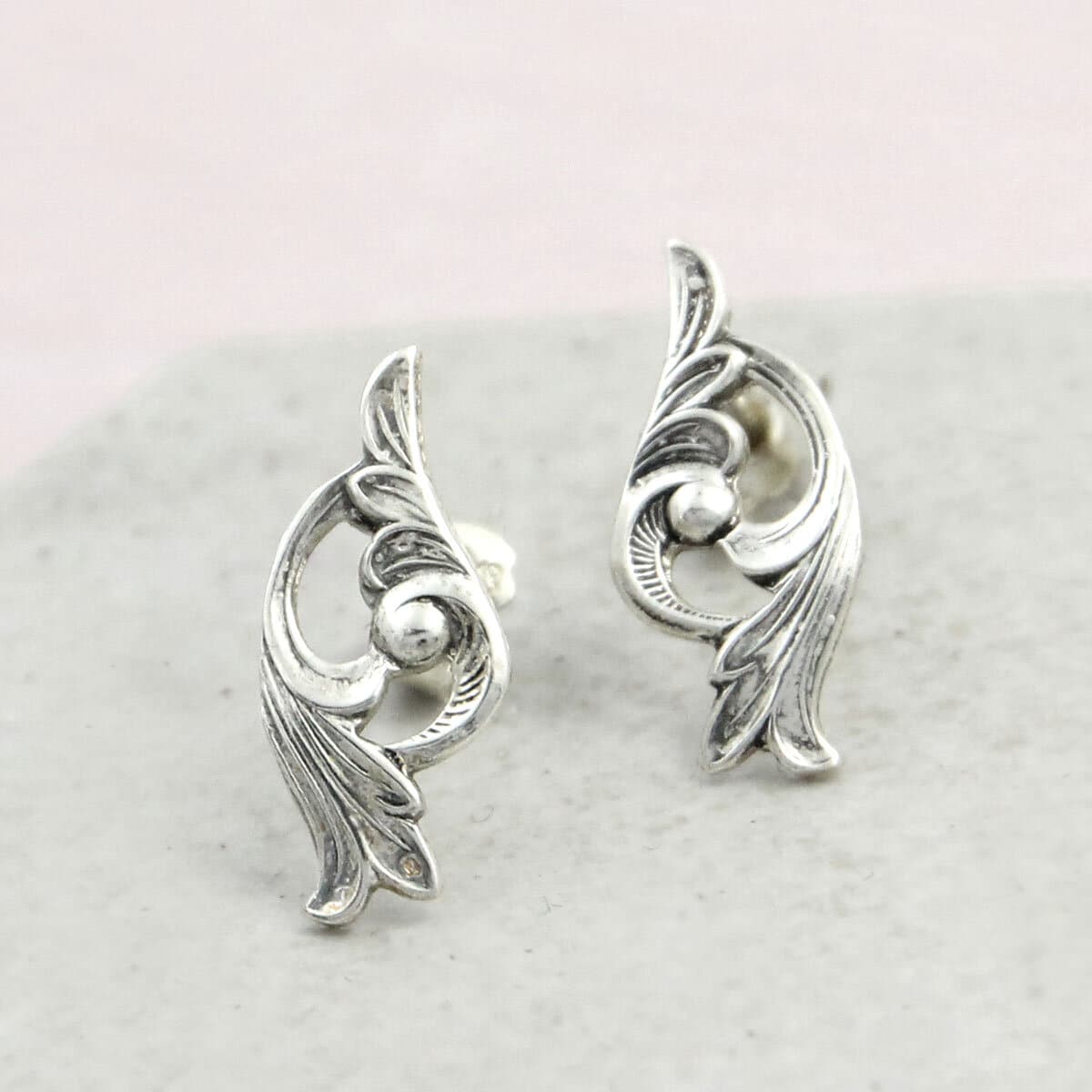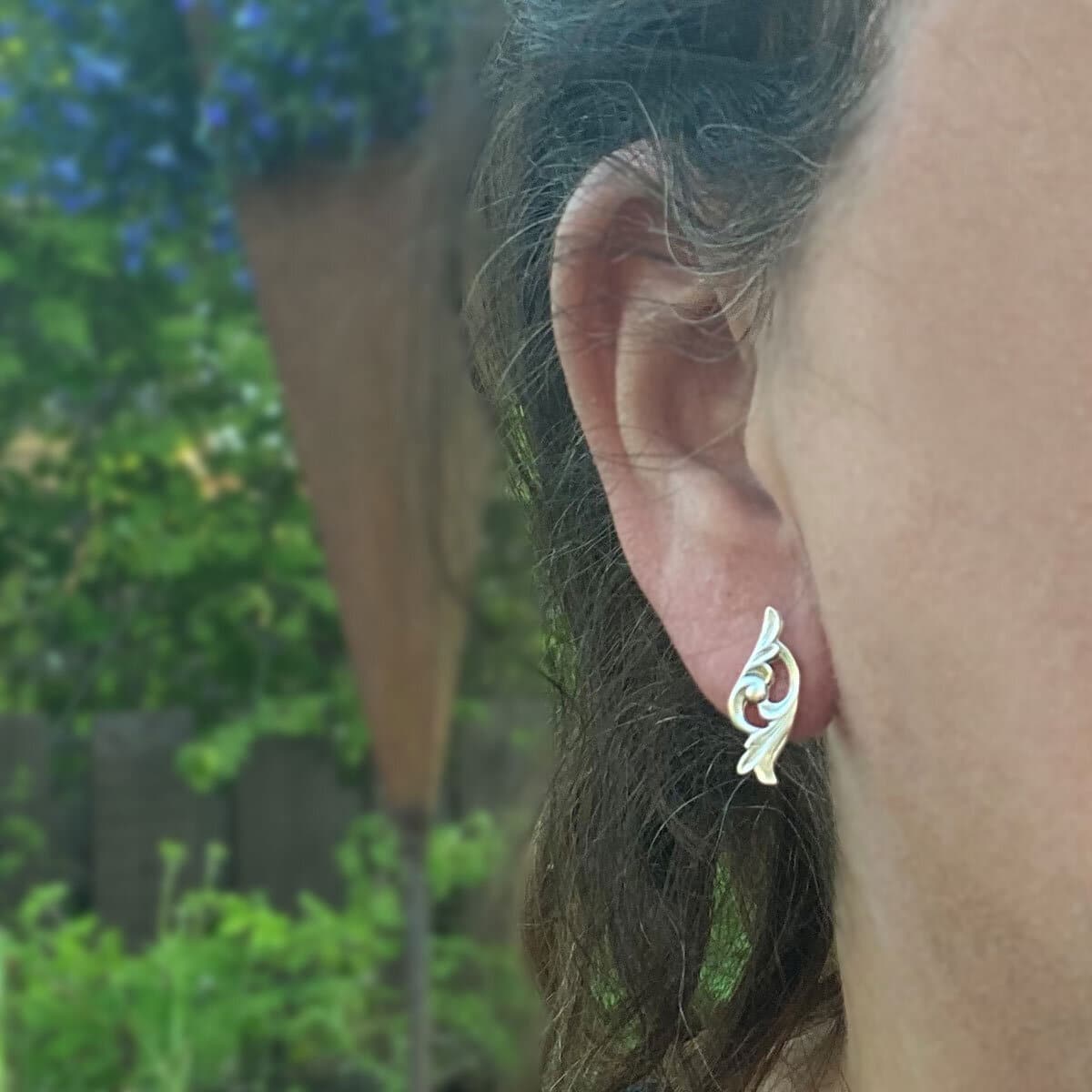 Viking Rose ørepynt er redesignet av en sølvskje med det klassiske mønsteret Viking Rose. Den detaljerte ornamentikken gir smykket et tidløst og rolig uttrykk, med tydelig forankring i nordisk tradisjon.